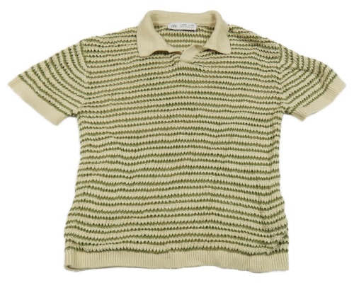 Béžovo-zelené pruhované pletené polo tričko Zara