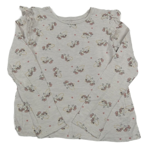 Svetlobéžové melírované tričko s jednorožcami a srdiečkami a volánikmi C&A