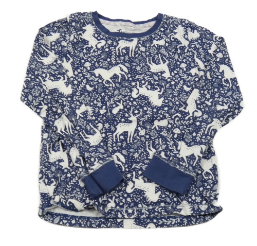 Tmavomdoro-biele tričko s kvetmi a zvířaty Tu