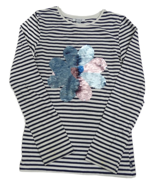 Bielo-tmavomodré pruhované tričko s květem z flitrů
