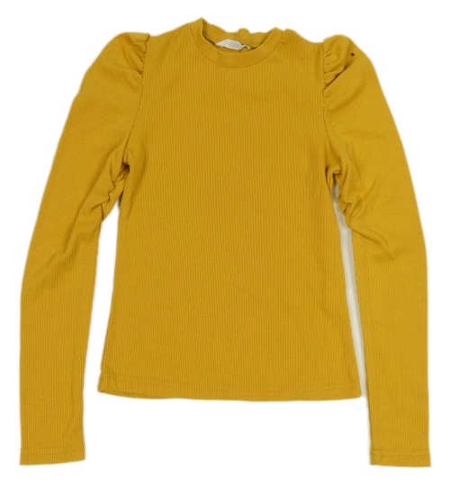 Žlté rebrované tričko s nařasenými rukávy Shein