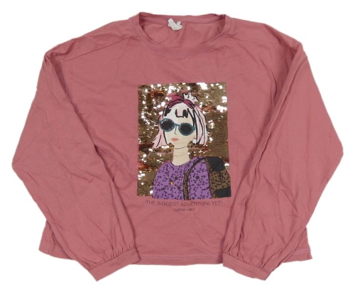 Staroružové crop tričko s dívkou a překlápěcími flitre ZARA