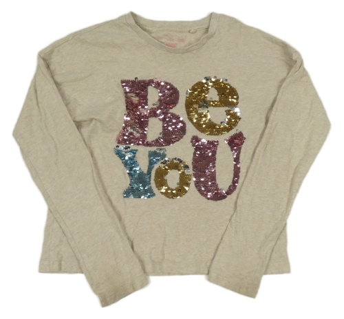 Světlebéžovo/šedé melírované tričko s nápisem z překlápěcích flitrů F&F