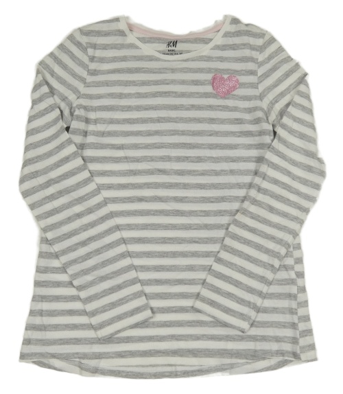 Bielo-sivé pruhované melírované tričko so trblietavým srdiečkom H&M