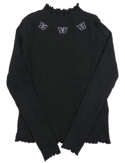 Čierne rebrované crop tričko s motýlikmi Page one young