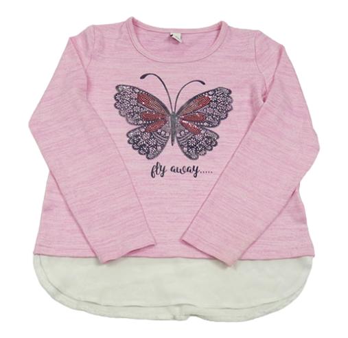Ružové melírované úpletové tričko s motýlom s flitrami Yigga