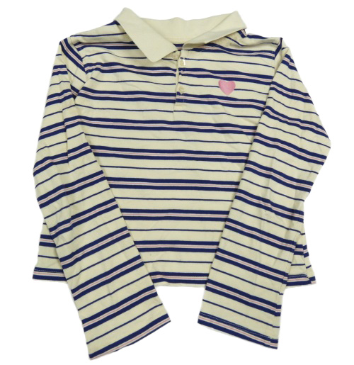 Krémovo-tmavomodro-ružové pruhované polo crop tričko s výšivkou H&M