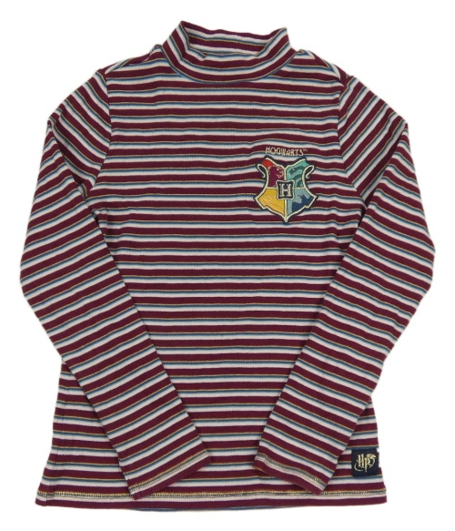Vínovo-ružové pruhované rebrované tričko s nášivkou - Harry Potter M&S