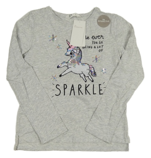 Nové - svetlosivé melírované tričko s jednorožcem z překlápěcích flitrů H&M