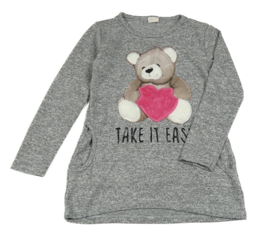 Sivá melírovaná ľahká svetrová tunika s medvedíkom