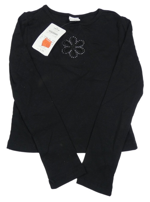 Nové - Čierne rebrované crop tričko s květem a kamienkami Page one young