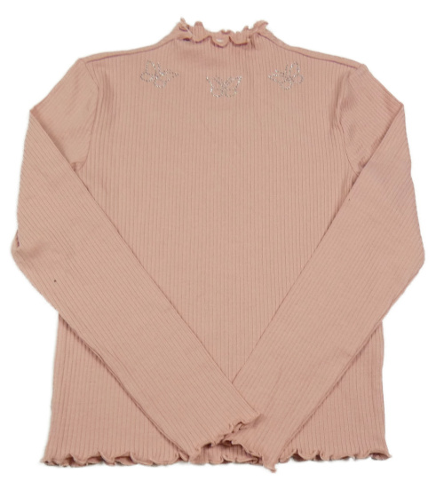Staroružové rebrované tričko s motýlky z kamínků Page one young