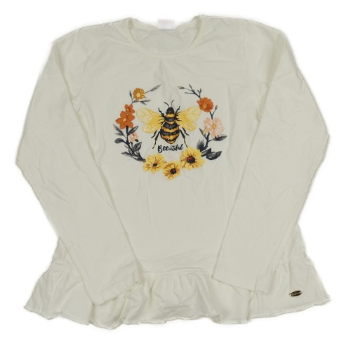Smotanové tričko s kvetmi a včelou