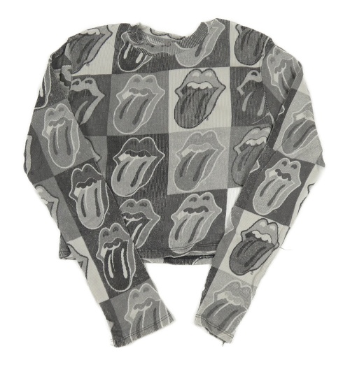 Šedé kostkované žebrované crop triko - The Rolling Stones H&M