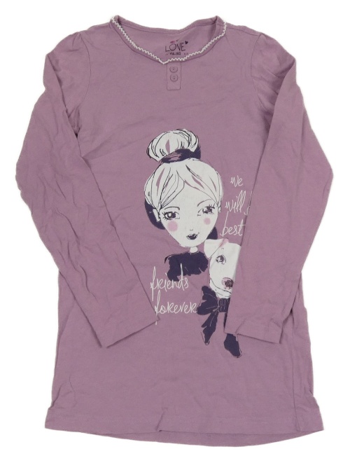 Svetlofialová tunika s dívkou a psíkom a nápismi TCM