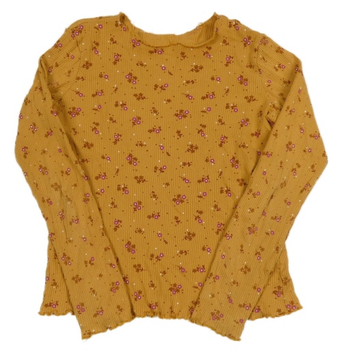 Horčicové rebrované tričko s kvietkami