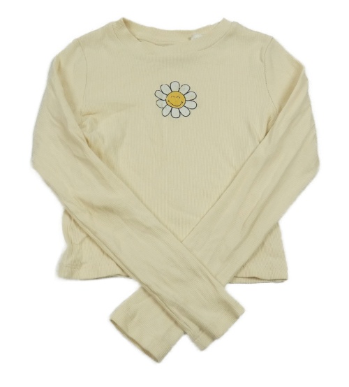 Světložluté rebrované crop tričko s květem H&M