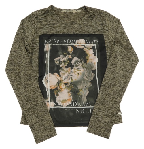 Béžovo-čierne melírované tričko s růžemi a nápismi GARCIA JEANS