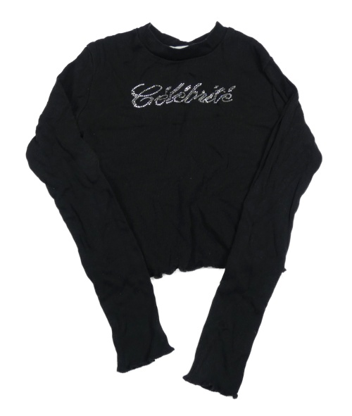 Čierne rebrované crop tričko s nápisem z kamínků H&M