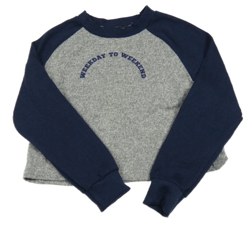 Sivo-tmavomodré melírované úpletové crop tričko s nápisom