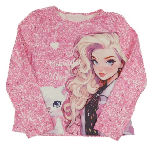 Ružovo-biele vzorované tričko s dívkou a mačkou Shein
