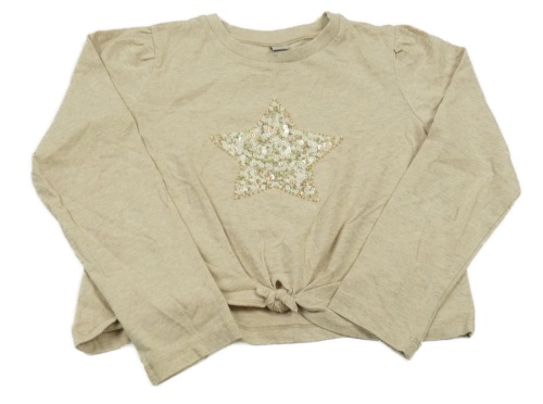 Béžové crop tričko s flitrami a uzlom Tu