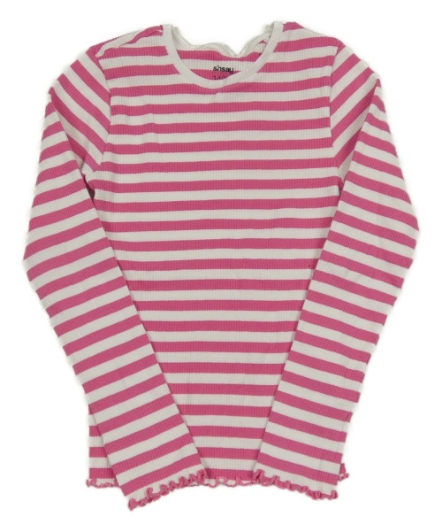 Bielo-tmavoružové pruhované rebrované tričko Sinsay