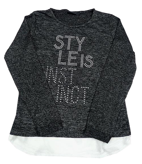 Čierno-sivé melírované úpletové tričko s nápisem z kamínků