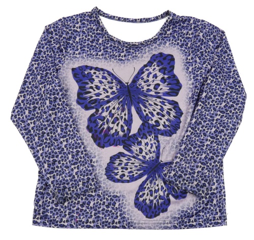 Fialové elastické vzorované crop tričko s motýlom