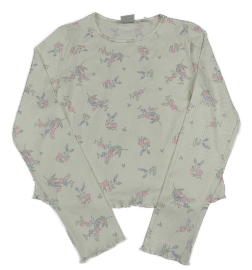 Biele rebrované tričko s kvetinami