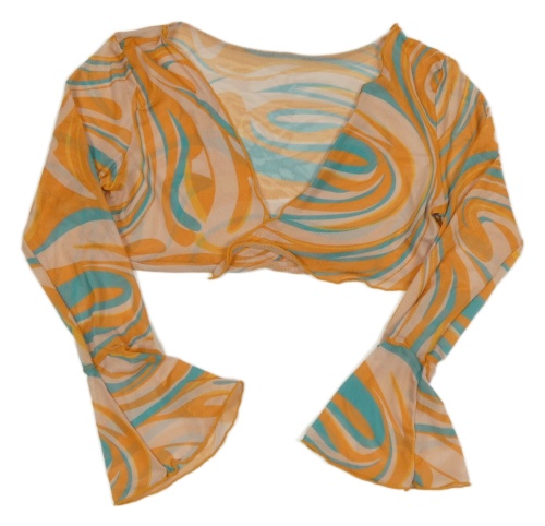 Oranžovo-modré vzorované tylové bolerko na zavazování Shein