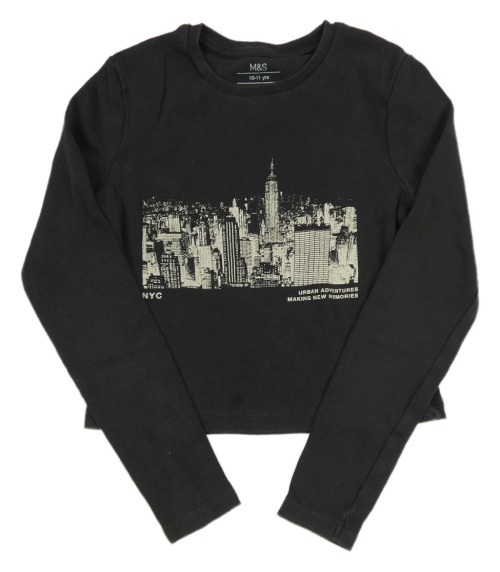 Antracitové rebrované crop tričko s potlačou M&S