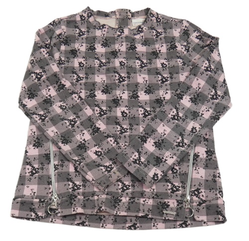 Svetloružová -čierne kockované tričko s kvietkami Coccodrillo