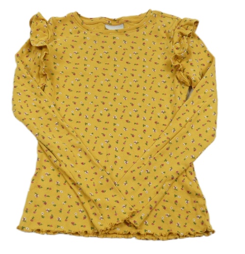 Horčicové kvetované rebrované tričko s volánikmi Matalan