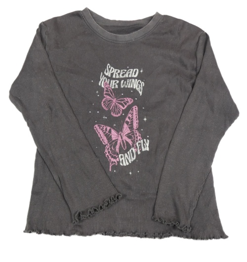 Nové - Tmavosivé rebrované tričko s motýly a kamienkami Dunnes