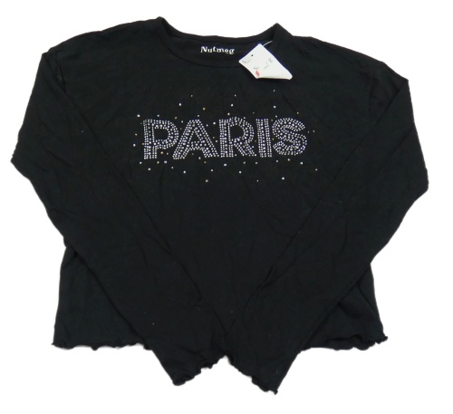 Čierne crop tričko s nápisem z kamienky Nutmeg