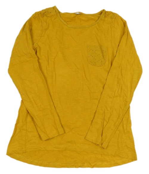 Horčicové melírované tričko s vreckom a madeirou