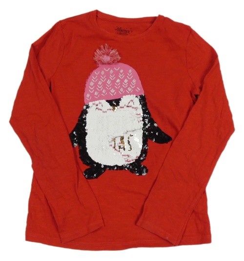 Červené melírované tričko s tučňáčkem s překlápěcími flitre F&F