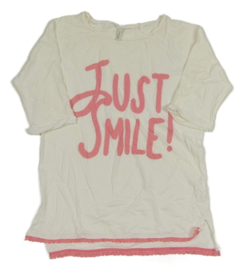 Biela tunika s nápisom a růžovým lemem Benetton