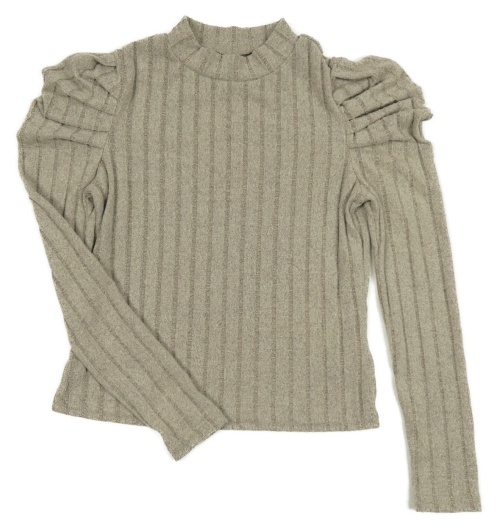 Béžové rebrované úpletové crop tričko s nařasenými rukávy Shein
