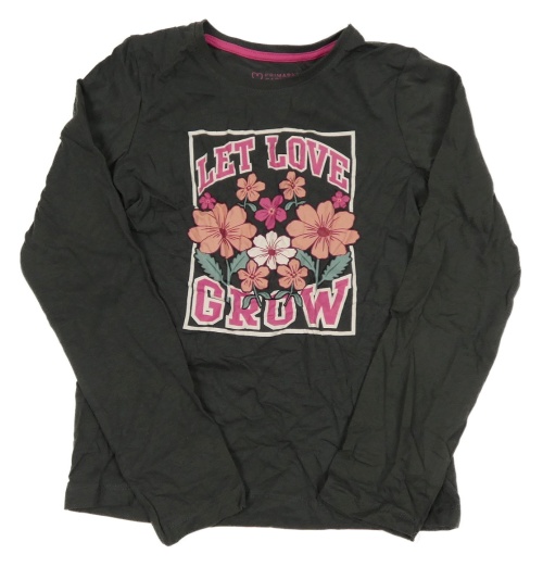 Tmavosivé tričko s kvietkami a nápisom Primark