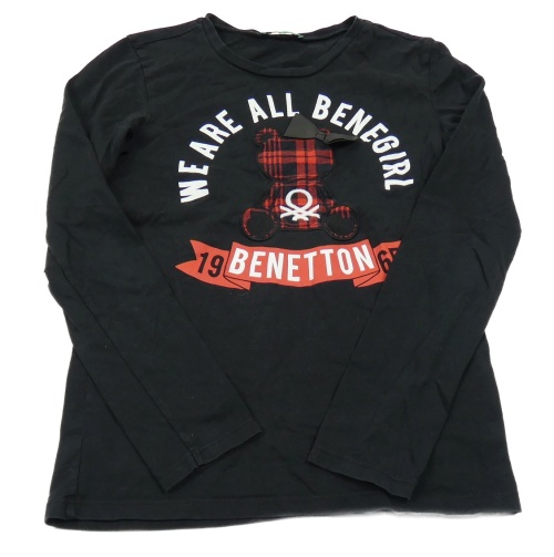 Čierne tričko s kockovaným medvěďom s mašlou Benetton