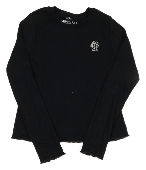 Čierne rebrované crop tričko so slniečkom a nápisom M&S