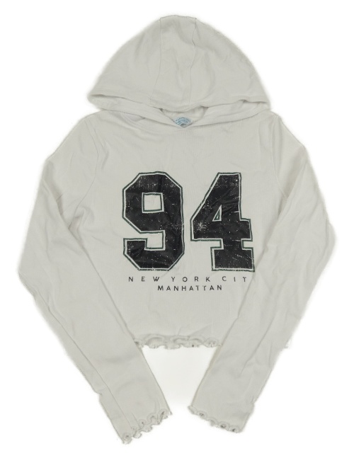Biele rebrované crop tričko s číslom a nápismi a kapucňou PRIMARK