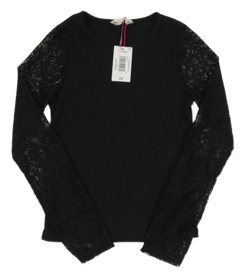 Nové - čierne rebrované tričko s čipkou Candy couture