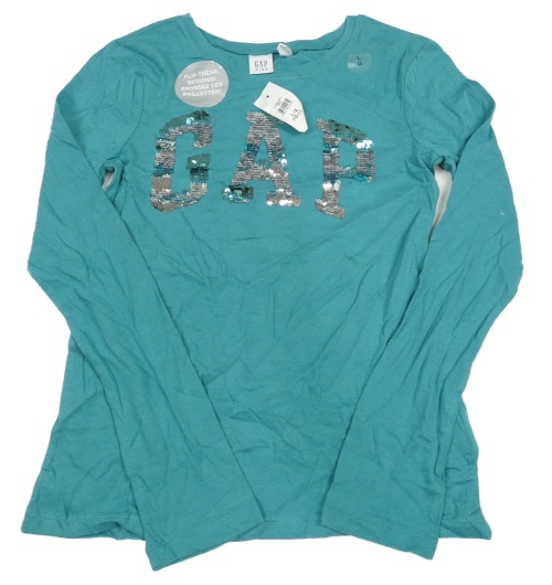 Nové - modrozelené tričko s logem z překlápěcích flitrů GAP