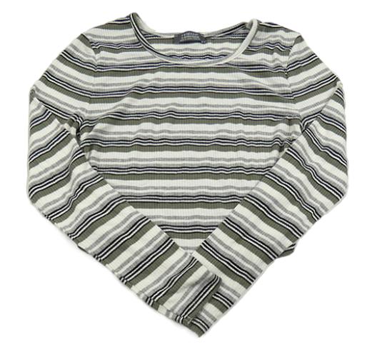 Šedo-černo-khaki pruhované rebrované crop tričko Primark