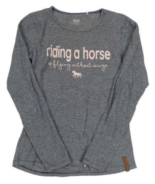 Tmavomodré melírované tričko s nápisom a koníkem Yigga