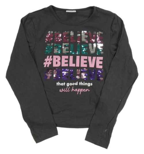 Sivé crop tričko s nápisom a flitrami Young idols
