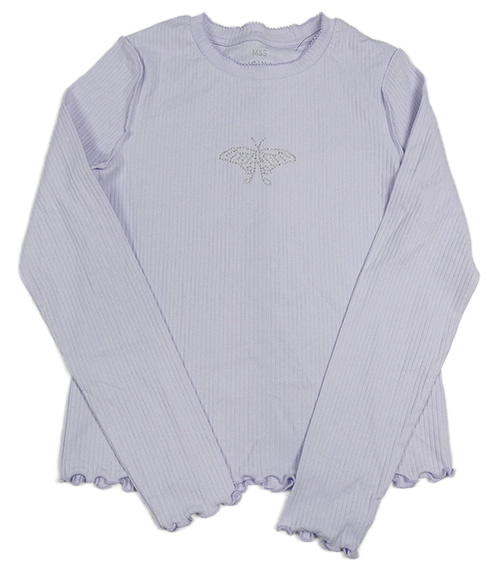 Levandulové rebrované crop tričko s můrou z kamínků M&S